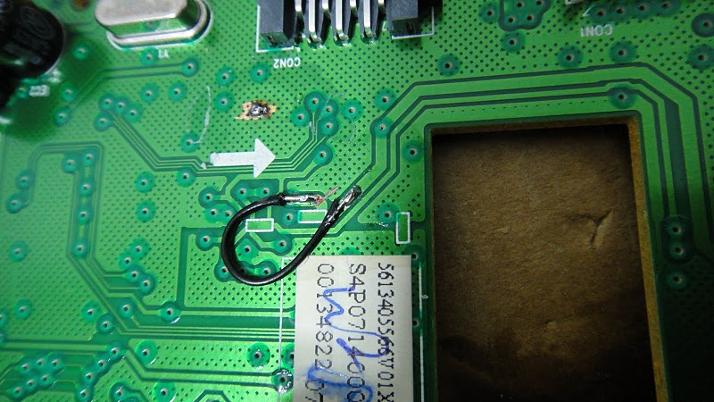 Látható, hogy e szerint az ellenállás másik végét nem forrasztjuk a panelre. Ez az előkészítés az 1.86-os JungleFlasher-be beépített MXIC unlockoláshoz is megfelel.