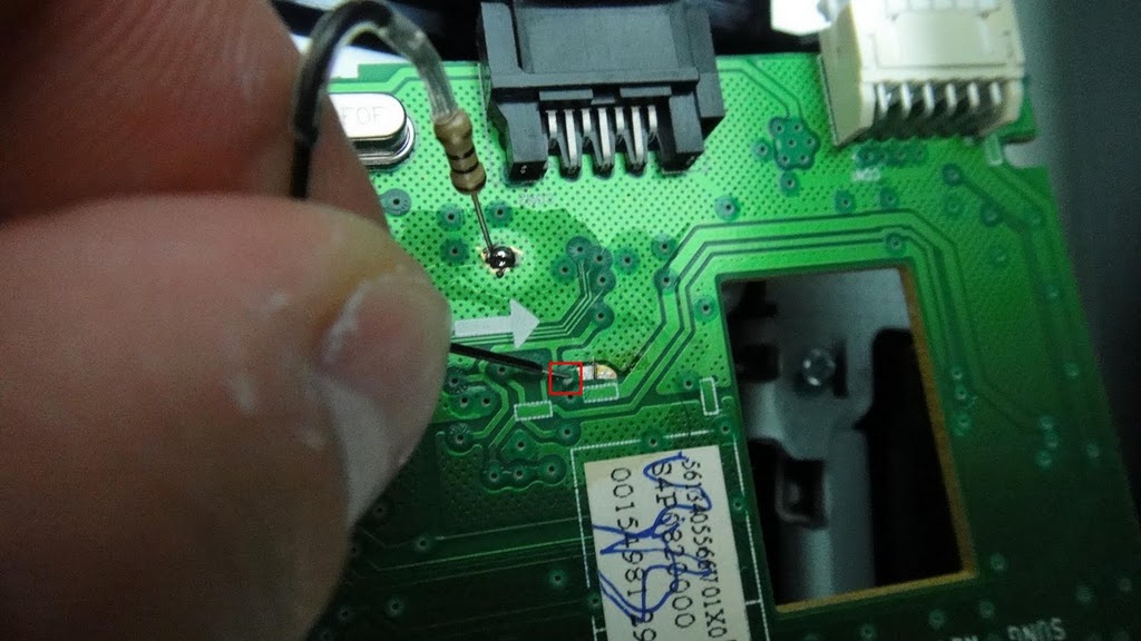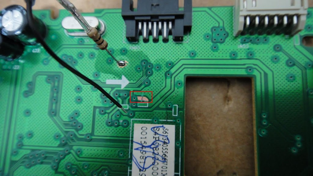 Ha fentiekkel megvagyunk a drive panelt a lenti ábrán látható módon egy 10 ohm-os ellenállás segítségével készítsük elő a beavatkozásra.