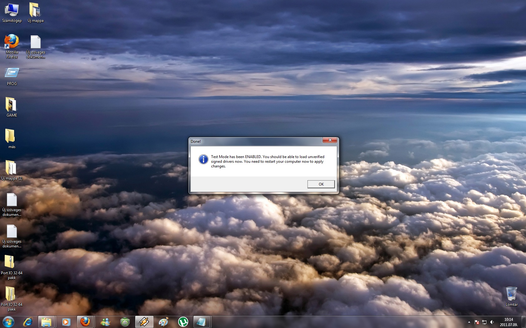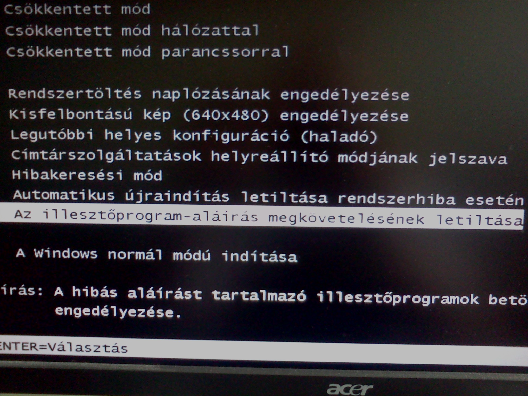 Windows 7 64bit betöltése előtt nyomjuk le az "F8" billentyűt, majd válasszuk az "illesztőprogram-aláírás megkövetelésének letiltása" opciót majd ENTER.